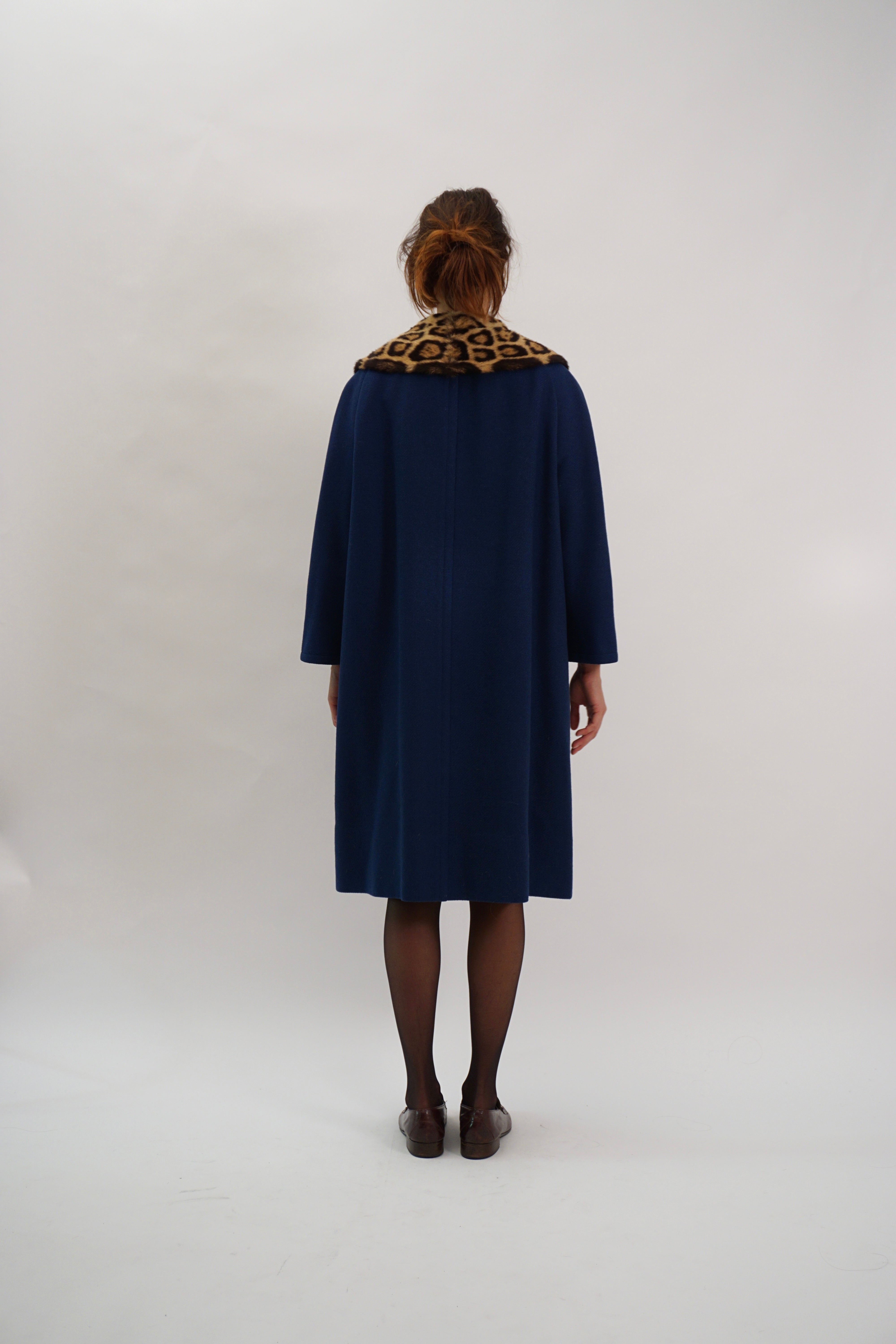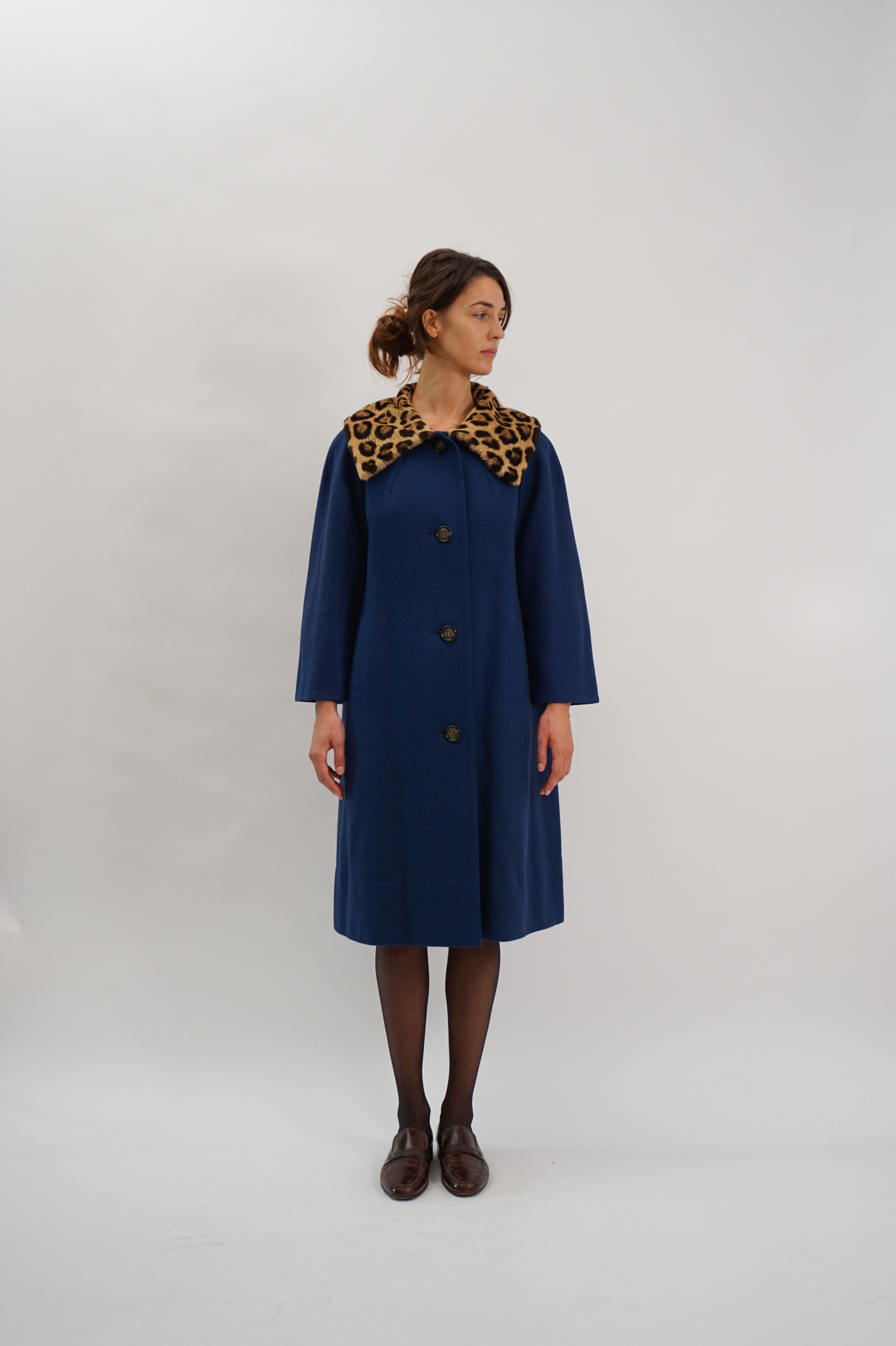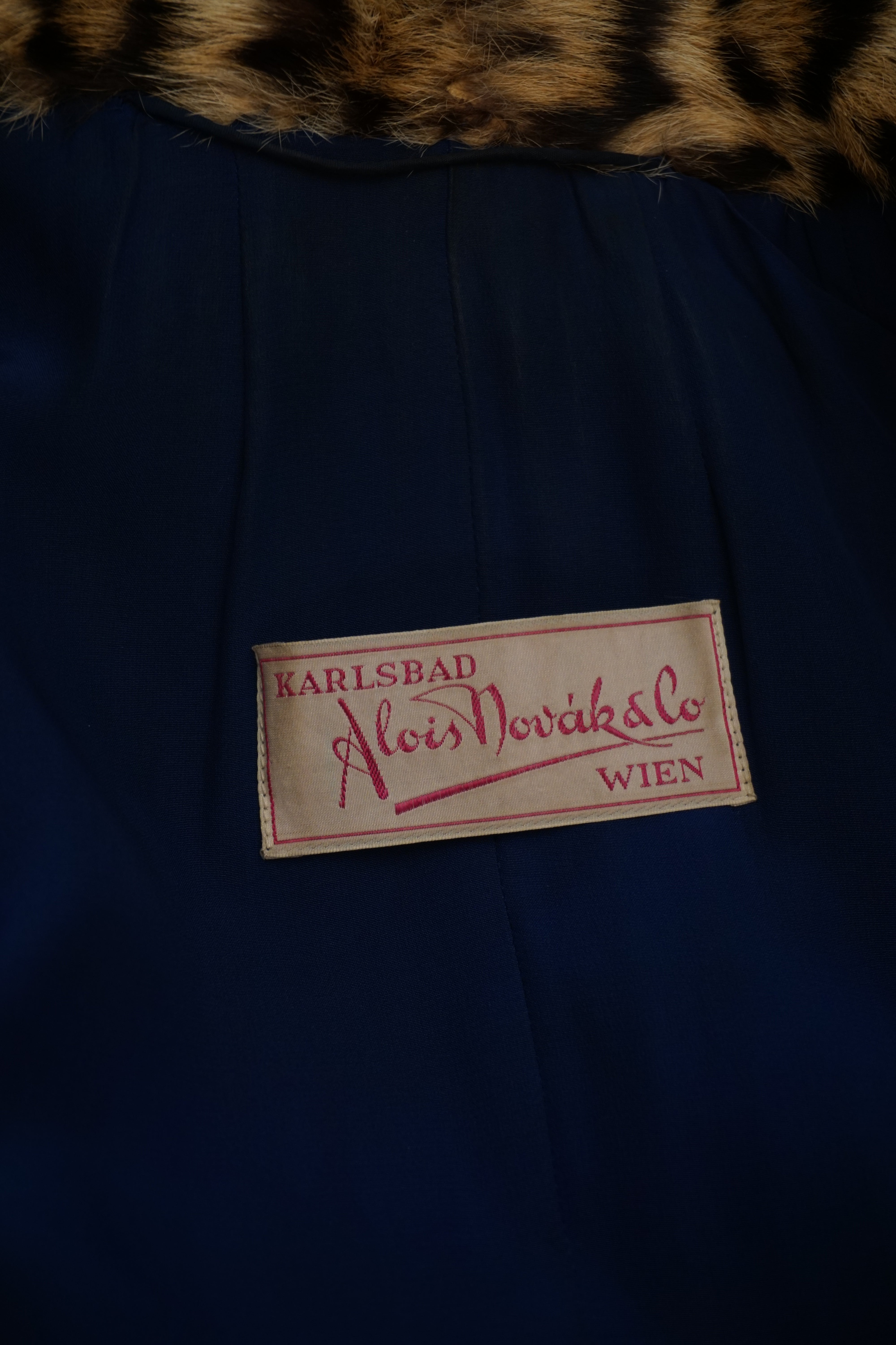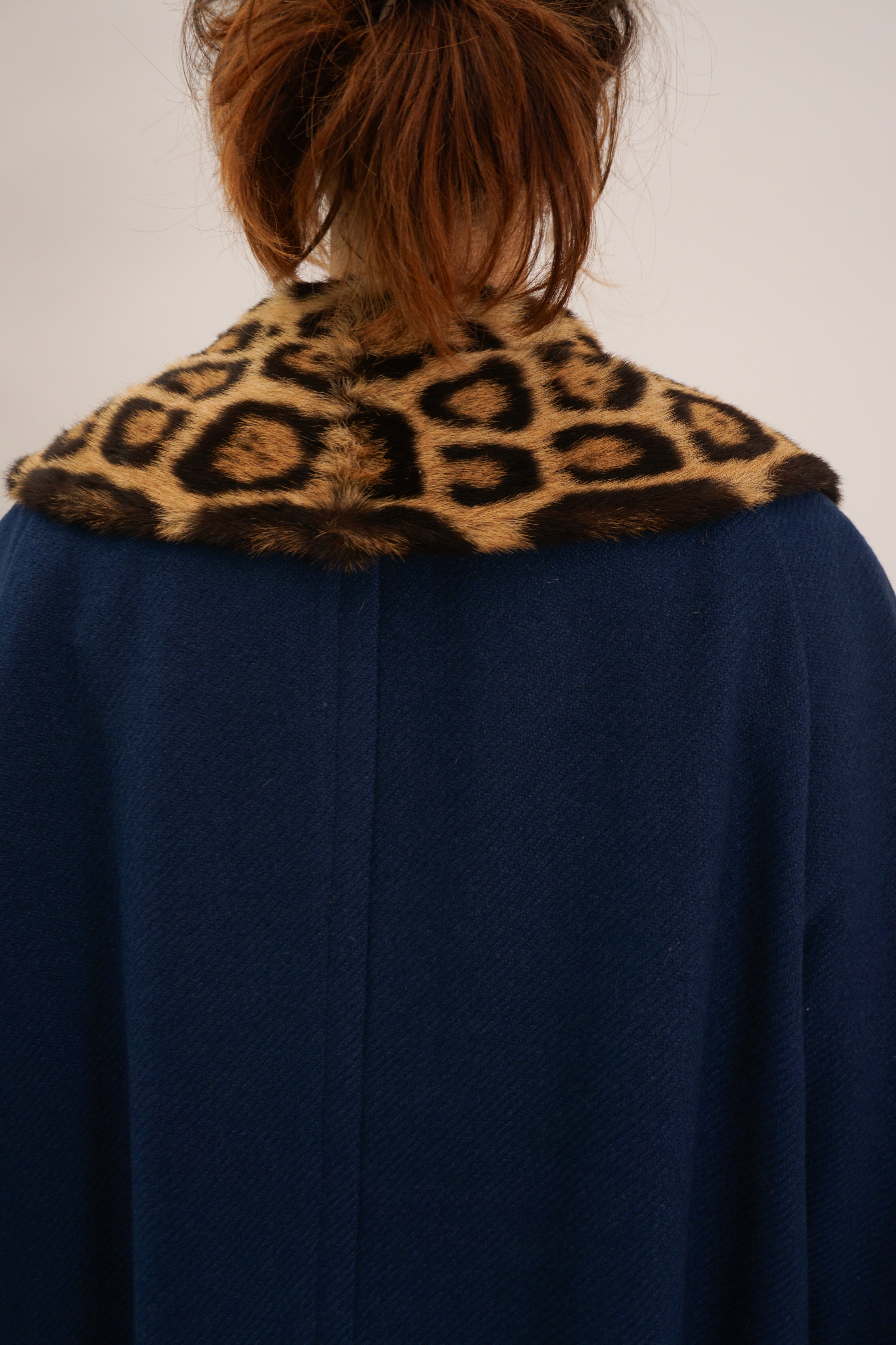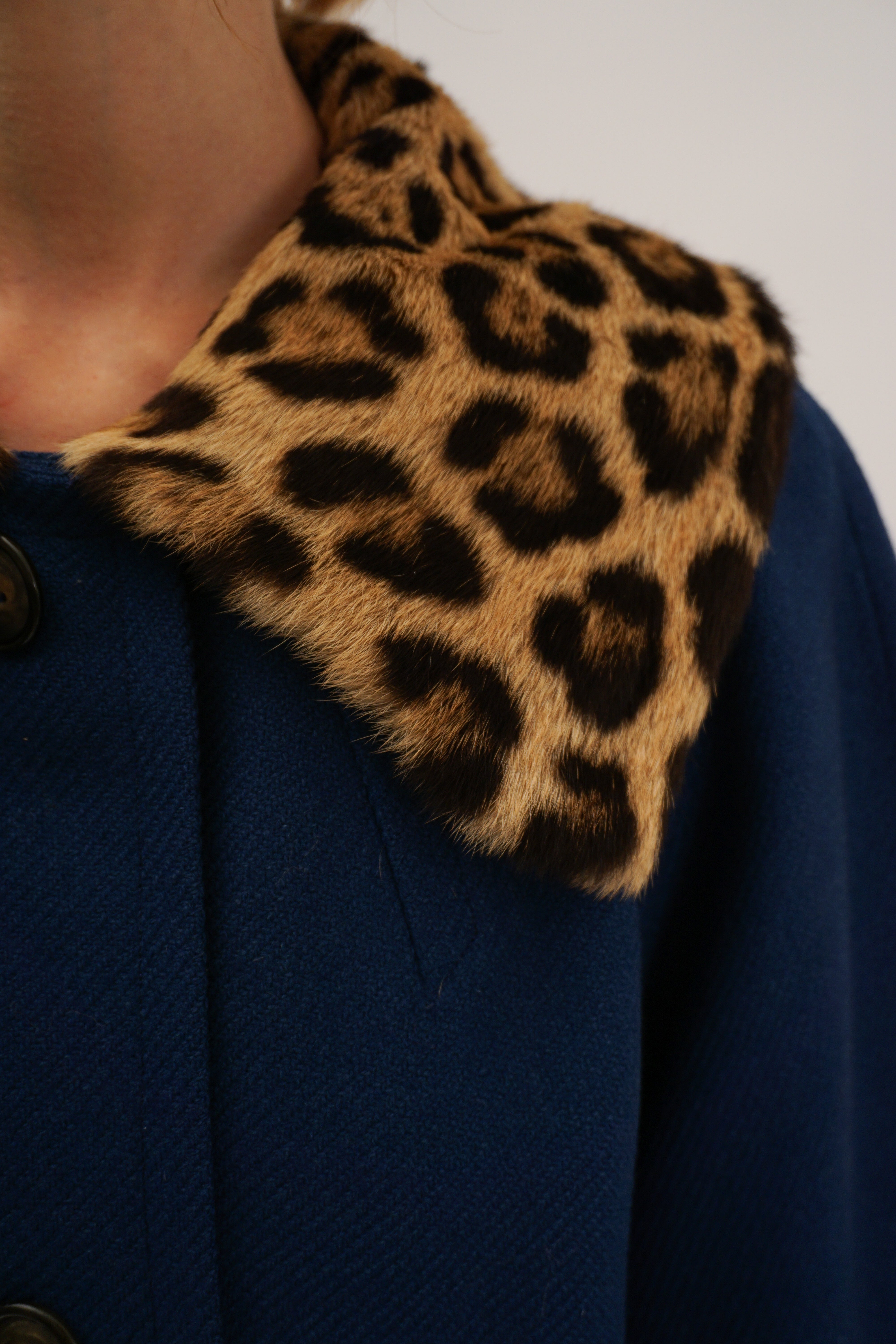 With genuine leopard fur collar. Vintage fur is forever sustainable.