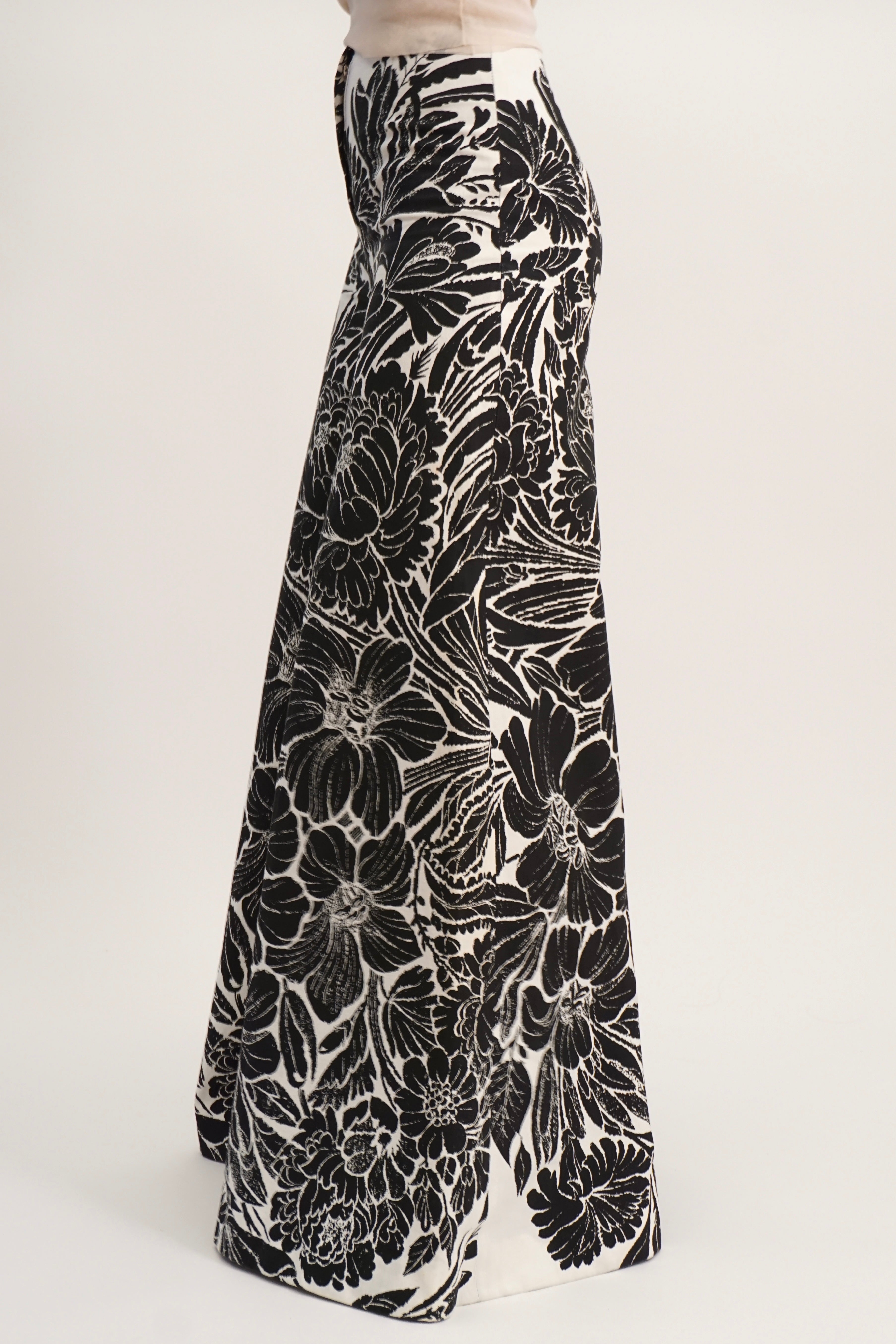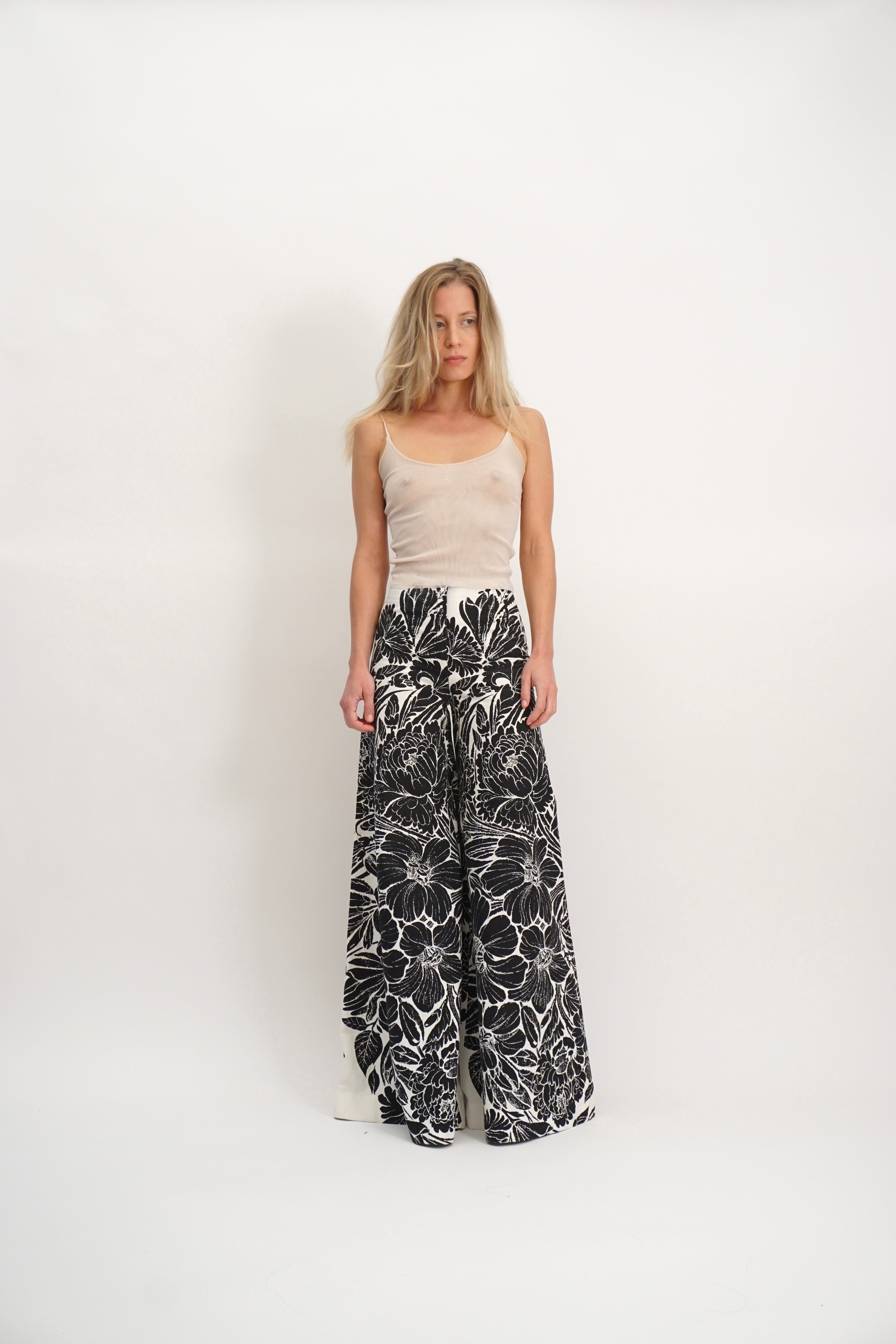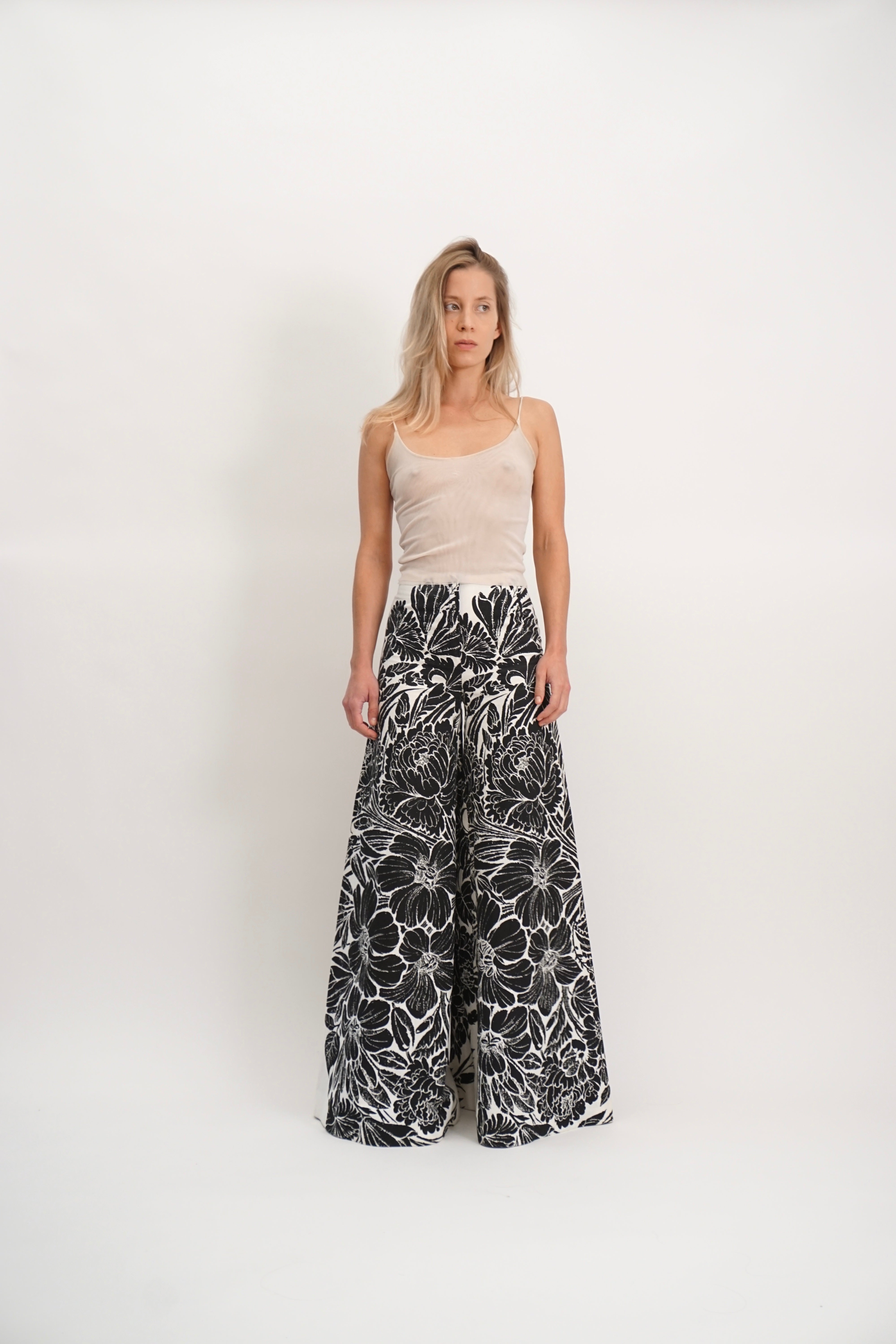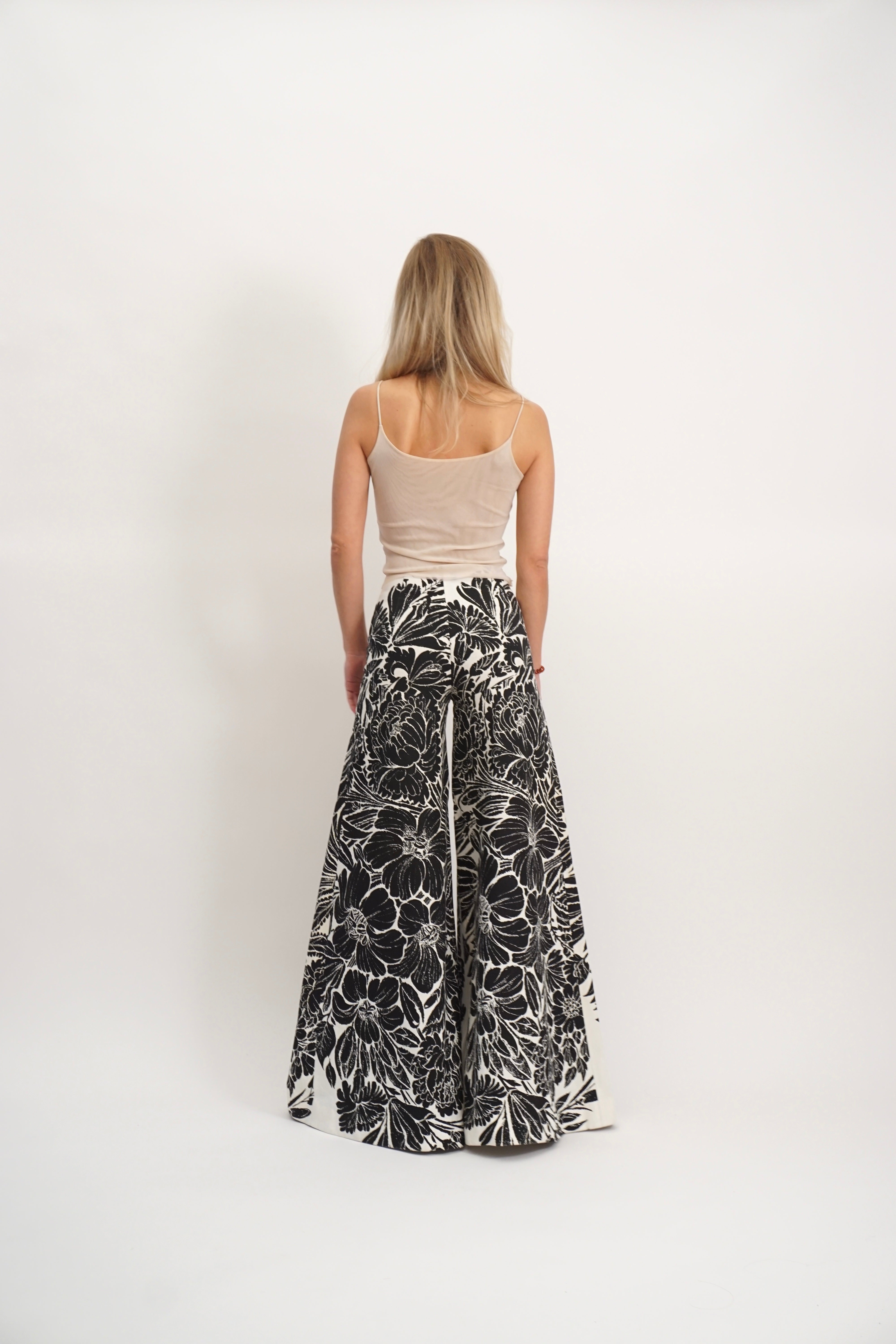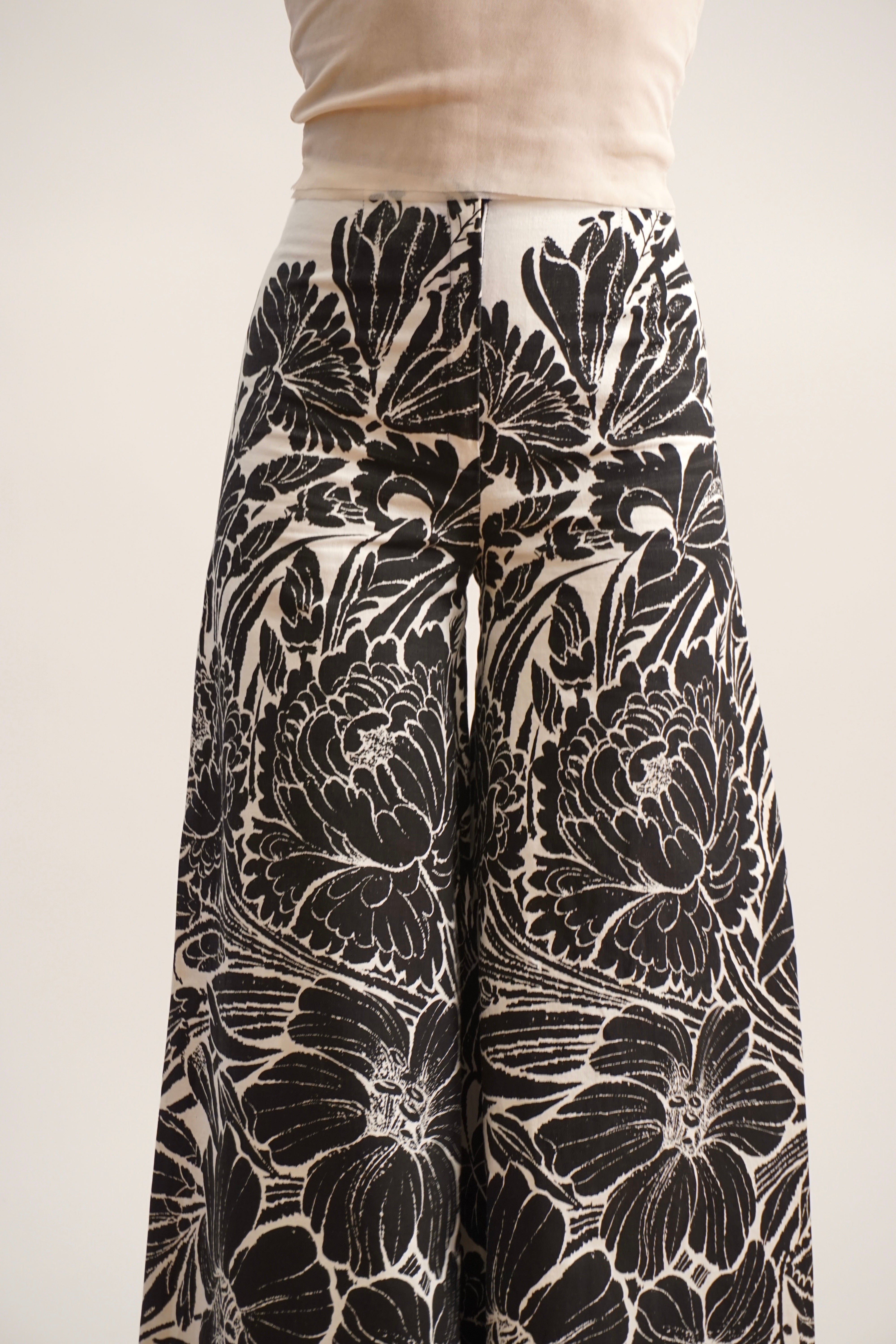 Super wide black and white pants with floral print